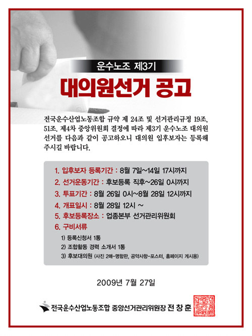 (°øÁö) ¿î¼ö³ëÁ¶ ¼±°Å °ø°í
