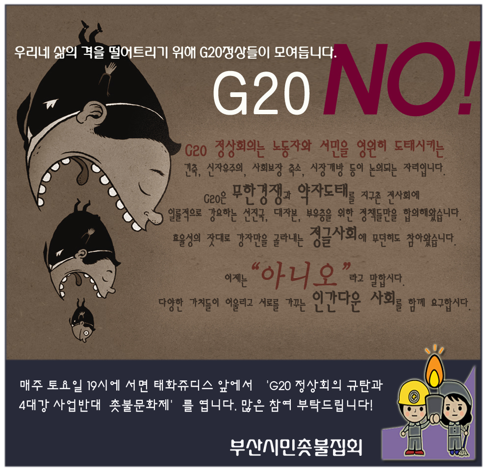 ±×·¡¼ÀÎÁö À̸í¹ÚÀº ¿Â°® È£µé°©À» ¶³¸é¼ G20 Á¤»óȸÀÇ °³ÃÖ¸¦ Çΰè»ï¾Æ ¹ÎÁÖÀû ±Ç¸®¸¦ ÈÄÅð½Ã۰í ÀÖ½À´Ï´Ù. G20 Á¤»óȸÀǰ¡ ¿¸®´Â »ï¼ºµ¿ ÄÚ¿¢½º ÁÖº¯¿¡´Â ³ôÀÌ 2.2mÀÇ ¹æÈ£º®(À̸¥¹Ù 'G20¿ë ¸í¹Ú»ê¼º')À» ¼³Ä¡Çϰí ÀÖÁÒ. ¶Ç Çѳª¶ó´çÀÌ Áö³ 5¿ù ±¹È¸¿¡¼ Åë°ú½ÃŲ 'G20 Á¤»óȸÀÇ °æÈ£¾ÈÀüÀ» À§ÇÑ Æ¯º°¹ý' ÀÌ 10¿ù 1ÀϺÎÅÍ ½ÃÇàµÇ°í ÀÖ½À´Ï´Ù. ÀÌ ¹ýÀ» Ȱ¿ëÇϸé G20 °æºñ¿¡ ±º´ë¸¦ µ¿¿øÇϰųª ´ëÅë·É½Ç °æÈ£Ã³ÀåÀÌ Àڱ⠸¶À½´ë·Î ±¹¹ÎÀÇ ±âº»±ÇÀ» Á¦ÇÑÇÏ´Â °ÍÀÌ °¡´ÉÇØÁý´Ï´Ù.