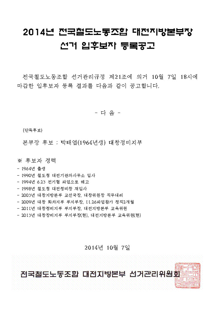 [°ø°í] ´ëÀüÁö¹æº»ºÎÀå ¼±°Å ÀÔÈĺ¸ÀÚ µî·Ï°ø°í