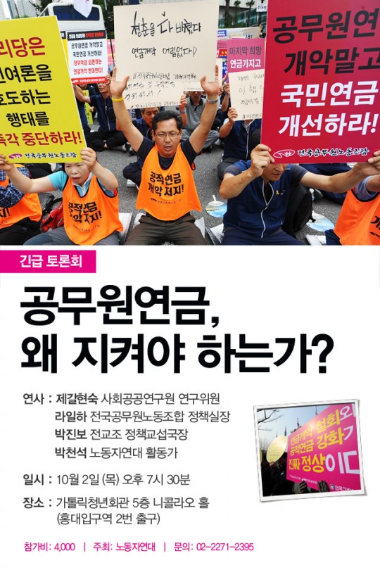 '°ø¹«¿ø¿¬±Ý, ¿Ö ÁöÄÑ¾ß Çϴ°¡?' ±ä±ÞÅä·Ðȸ¸¦ ÇÕ´Ï´Ù!