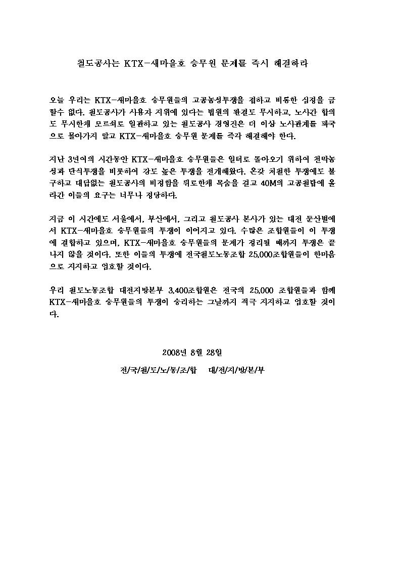 18 KTX-»õ¸¶À» ½Â¹«¿ø ¹®Á¦Çذá Ã˱¸ -´ëÀüÁö¹æº»ºÎ ¼º¸í¼­ ´ëÀüº»ºÎ 08-29 1948