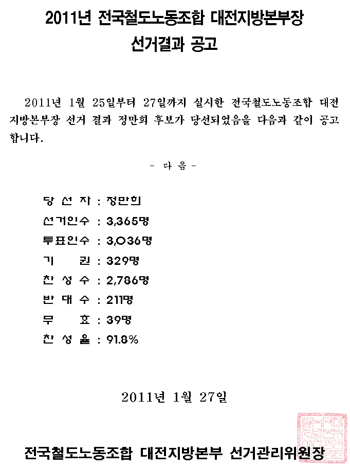 48 Á¦25´ë öµµ³ëÁ¶À§¿øÀå ¼±°Å °á°ú °ø°í ´ëÁöº» 02-27 1717