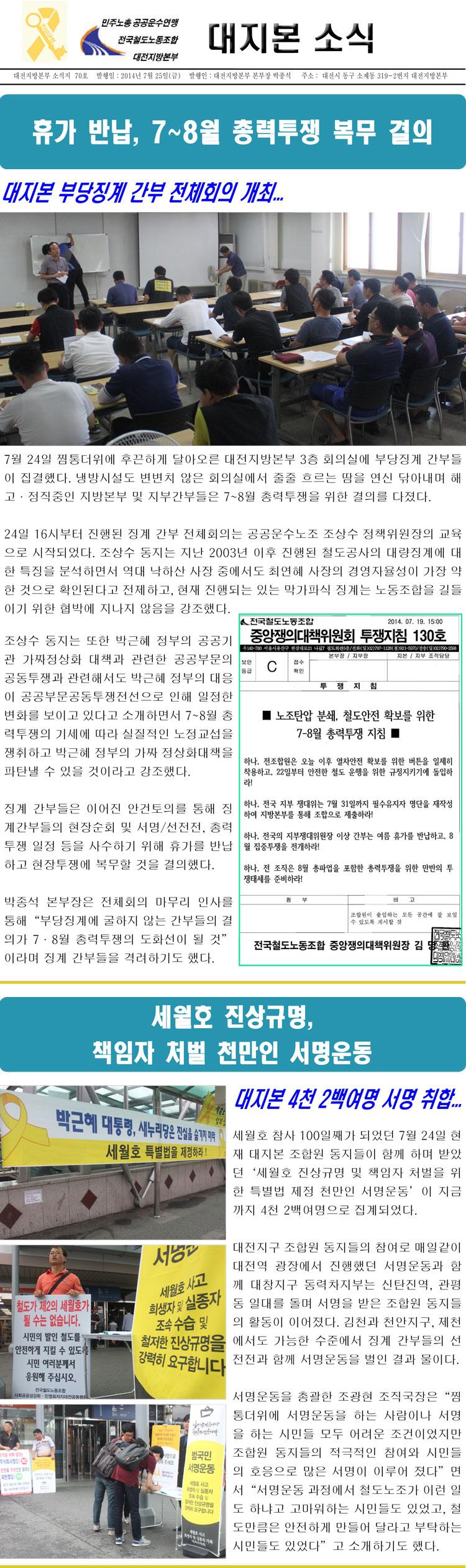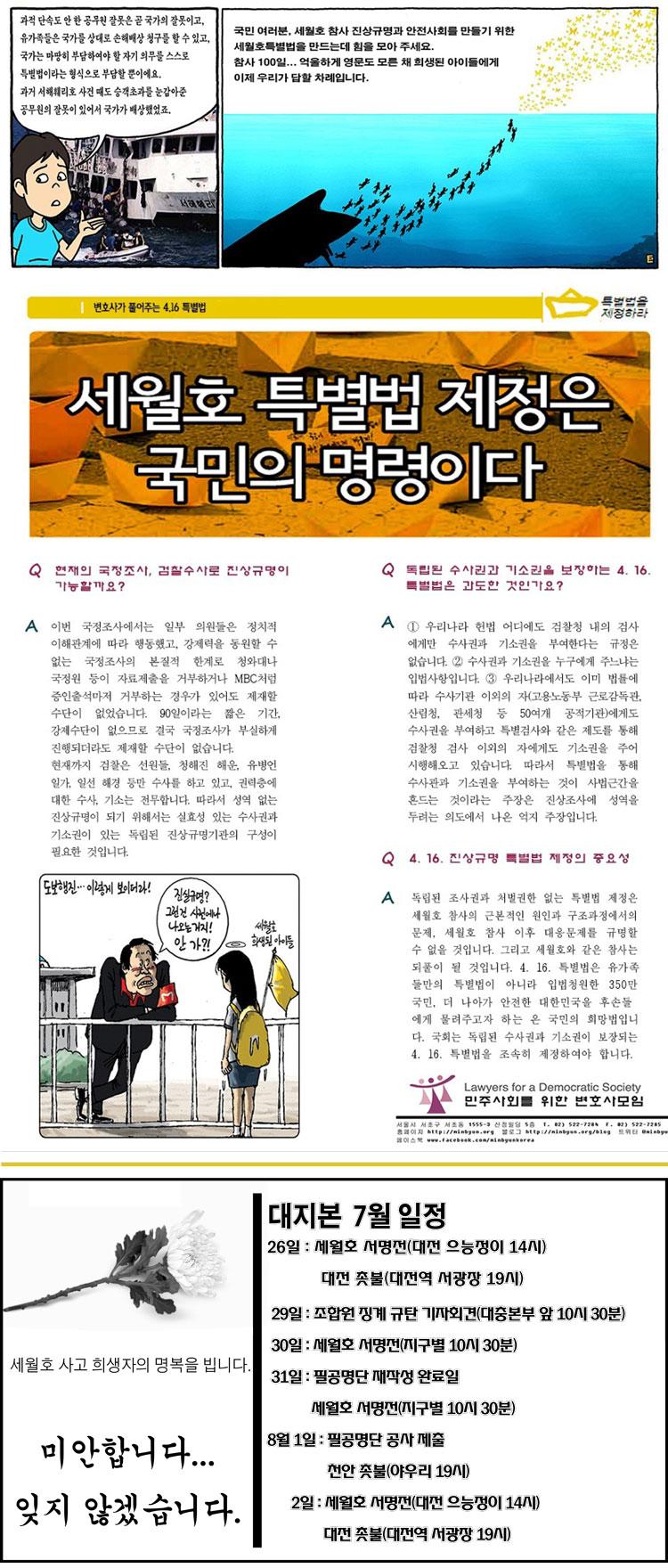 590 [¾Ë¸²] ¼¼¿ùÈ£ Âü»ç 100ÀÏ ´ëÀü½Ã¹Î´ëȸ ´ëÁöº» 07-23 957