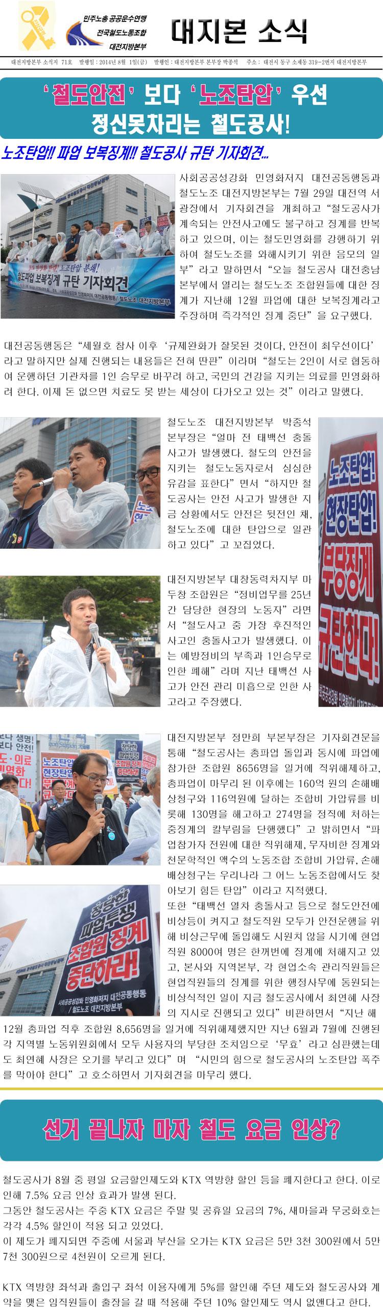 [¼Ò½Ä 71] 'öµµ¾ÈÀü' º¸´Ù '³ëÁ¶Åº¾Ð'ÀÌ ¿ì¼±ÀΠöµµ°ø»ç!!