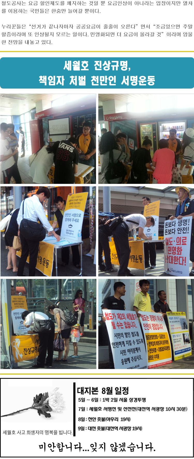 590 [¾Ë¸²] ¼¼¿ùÈ£ Âü»ç 100ÀÏ ´ëÀü½Ã¹Î´ëȸ ´ëÁöº» 07-23 957