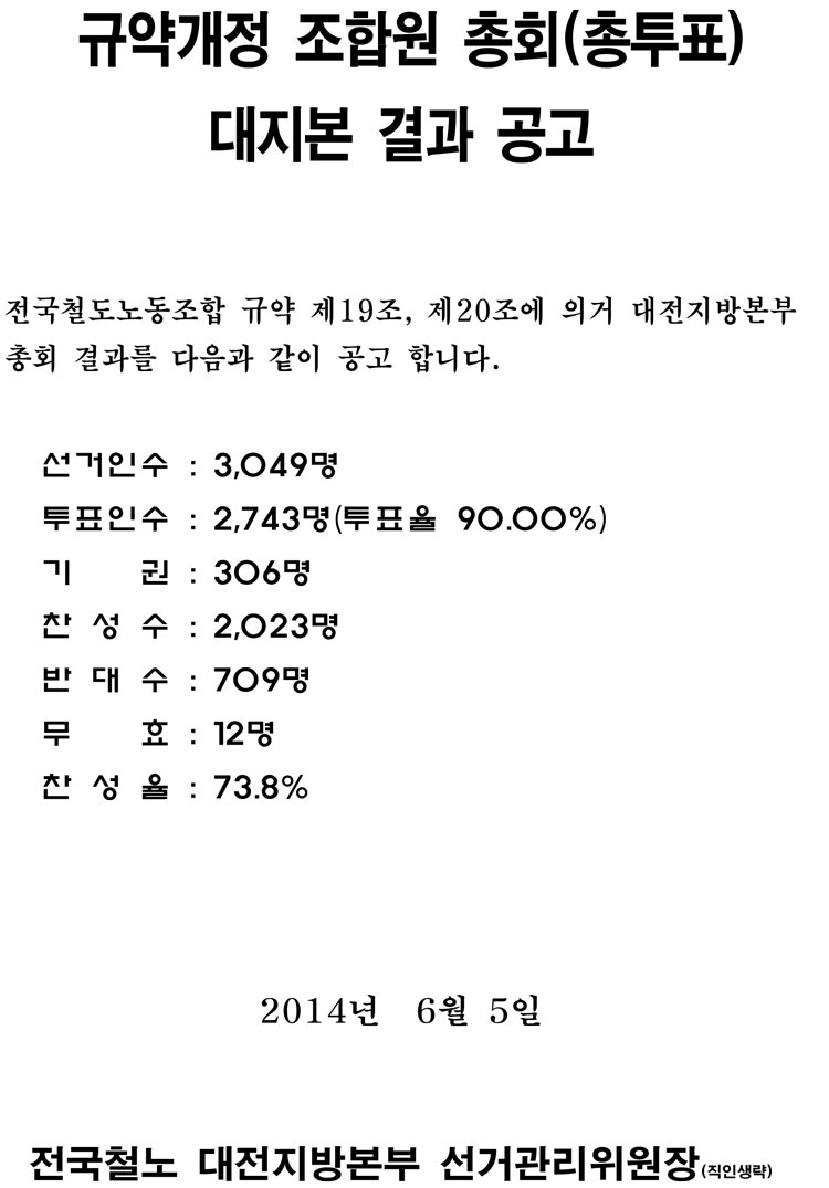 579 [°ø°í] 2014³â ±Ô¾à°³Á¤ ´ëÁöº» Á¶ÇÕ¿ø ÃÑȸ °á°ú ´ëÁöº» 06-05 1038