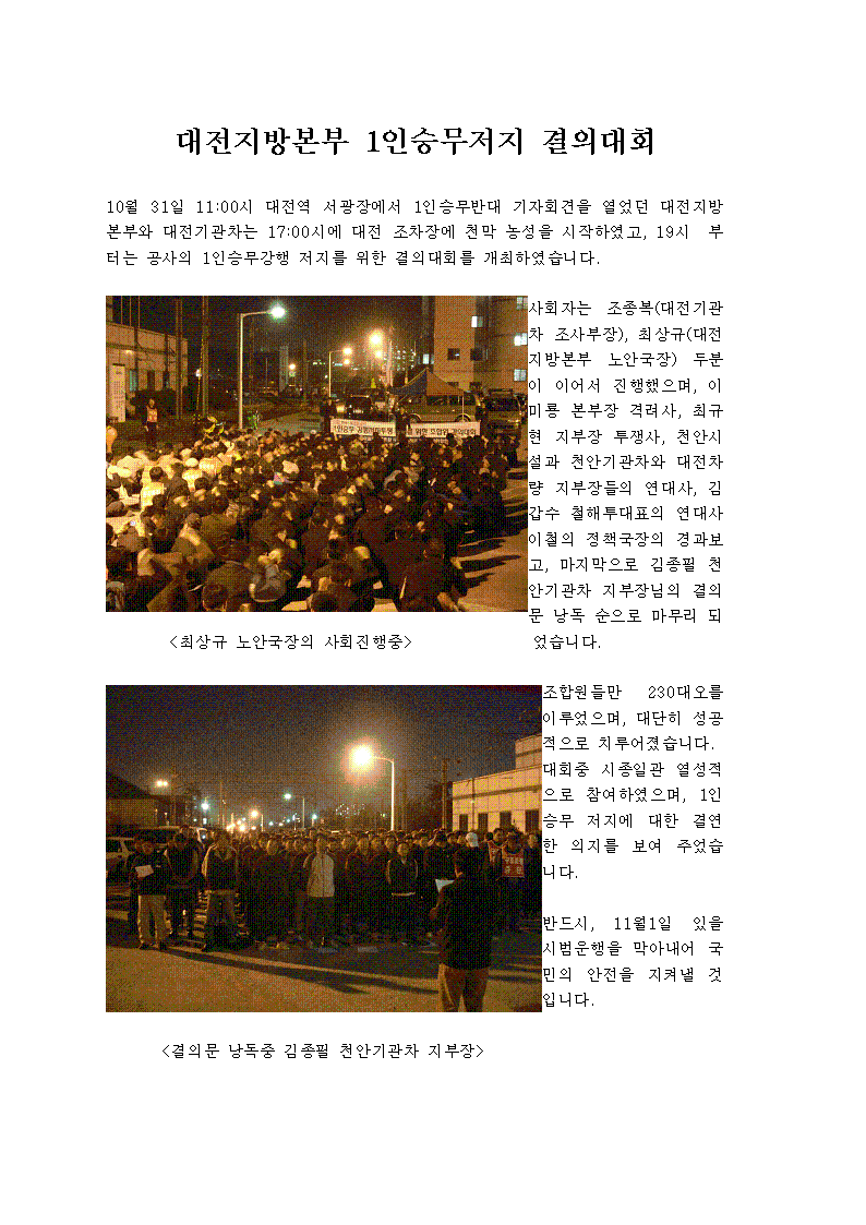 ´ëÀüÁö¹æº»ºÎ ´ëÀü±â°üÂ÷ 1Àν¹«°­Çà ÀúÁö°áÀÇ´ëȸ