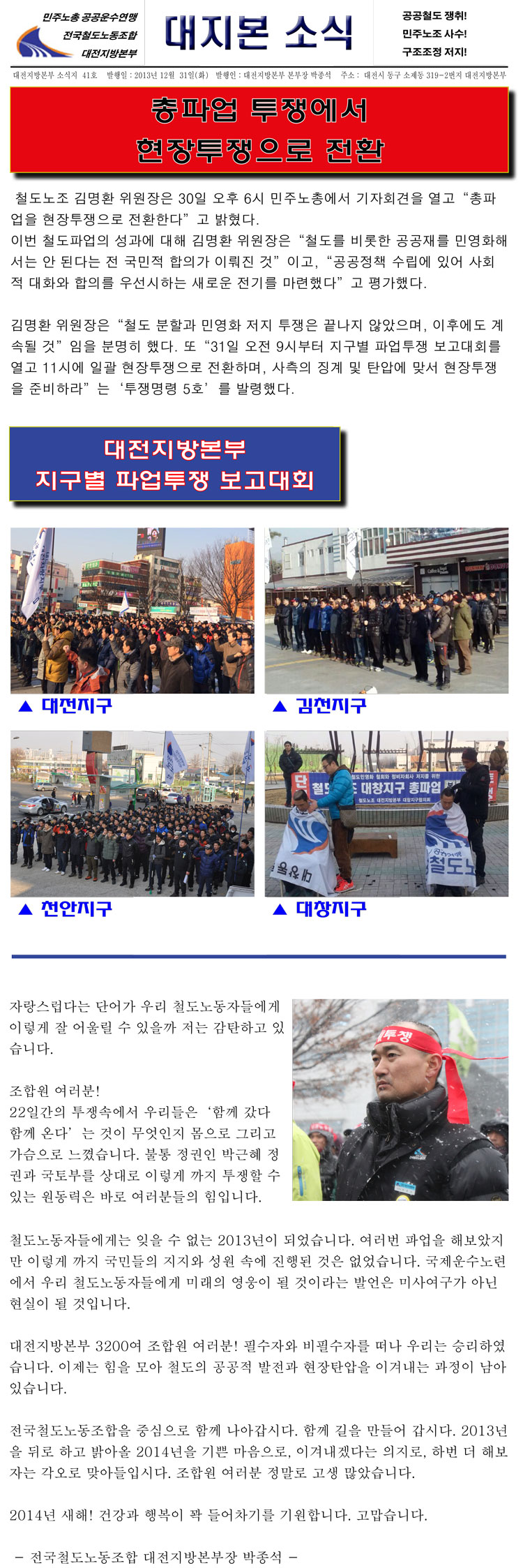 548 [¾Ë¸²] 1¿ù 18ÀÏ Ã¶µµ³ëµ¿ÀÚ 4Â÷ »ó°æ Ãѷ°áÀÇ´ëȸ ´ëÁöº» 01-13 1237