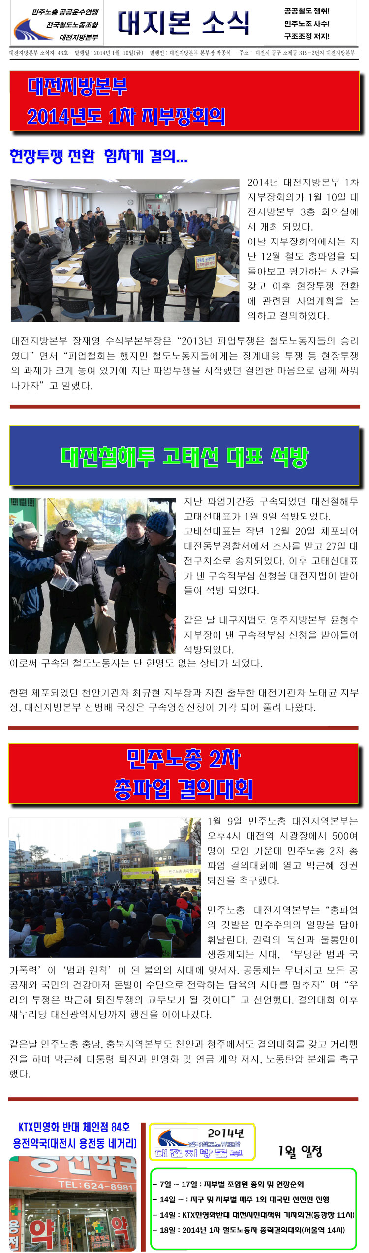 548 [¾Ë¸²] 1¿ù 18ÀÏ Ã¶µµ³ëµ¿ÀÚ 4Â÷ »ó°æ Ãѷ°áÀÇ´ëȸ ´ëÁöº» 01-13 1237