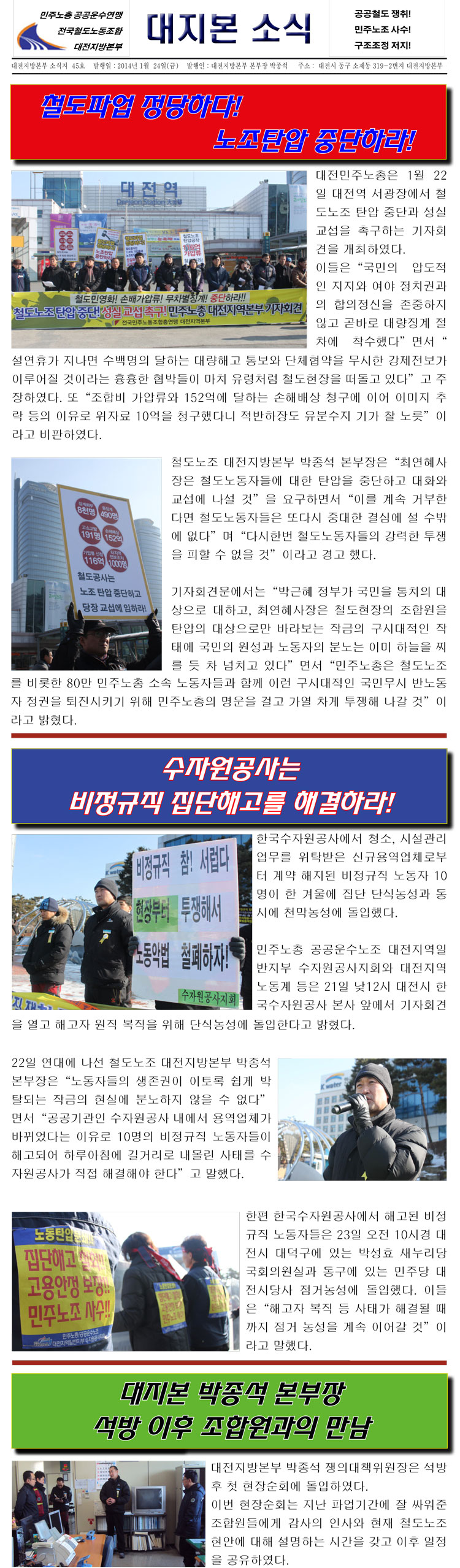 548 [¾Ë¸²] 1¿ù 18ÀÏ Ã¶µµ³ëµ¿ÀÚ 4Â÷ »ó°æ Ãѷ°áÀÇ´ëȸ ´ëÁöº» 01-13 1237