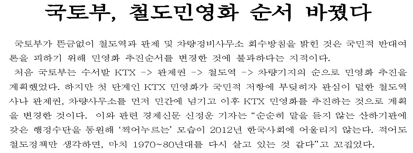 663 ¢º¢¸ KTX¹Î¿µÈ­¹Ý´ë¼­¸í 9¿ù±îÁö 100¸¸À» ¸ñÇ¥·Î öµµ³ëÁ¶ 06-27 809
