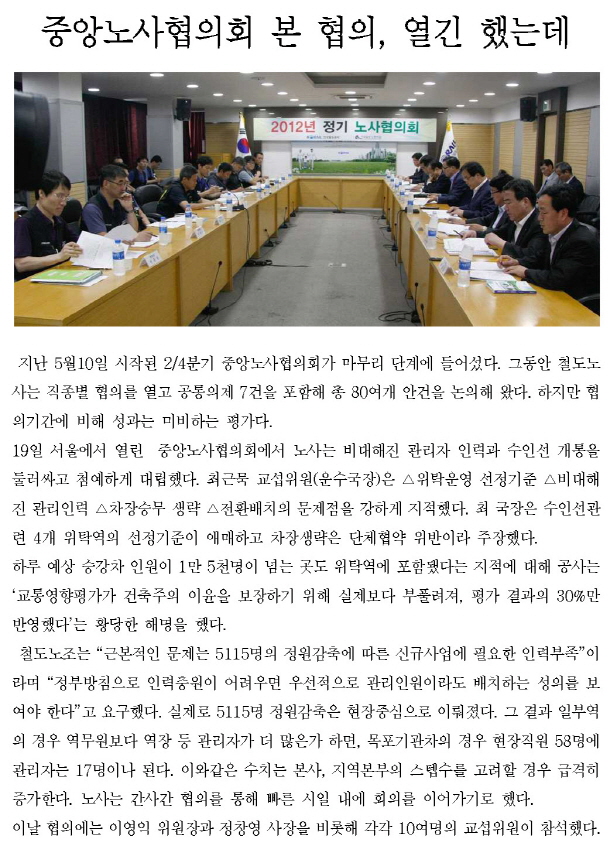 ¢º¢¸ öµµ³ëÁ¶ Áß¾Ó³ë»çÇùÀÇȸ º» ÇùÀÇ, ¿­±ä Çߴµ¥..