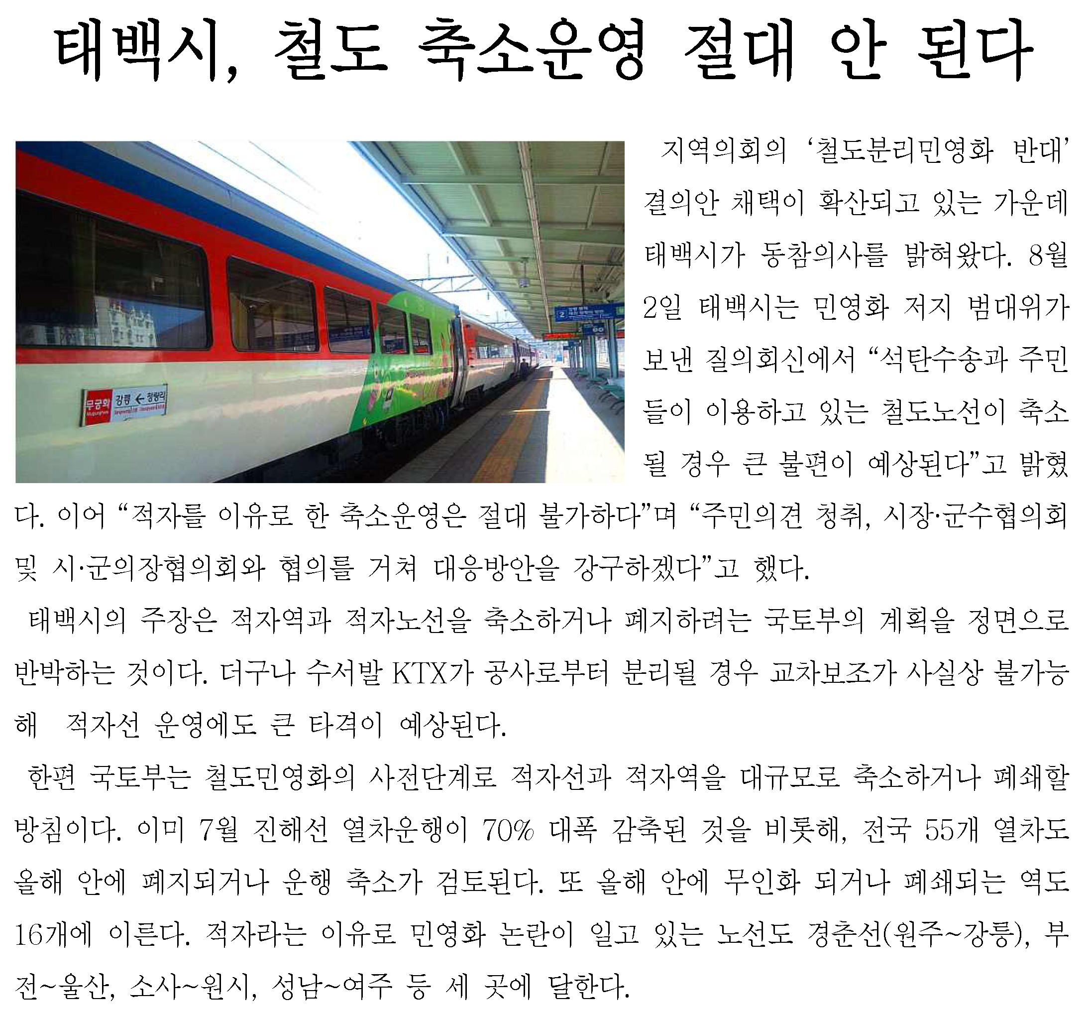 Źé½Ã, öµµ Ãà¼Ò¿î¿µ Àý´ë ¾È µÈ´Ù