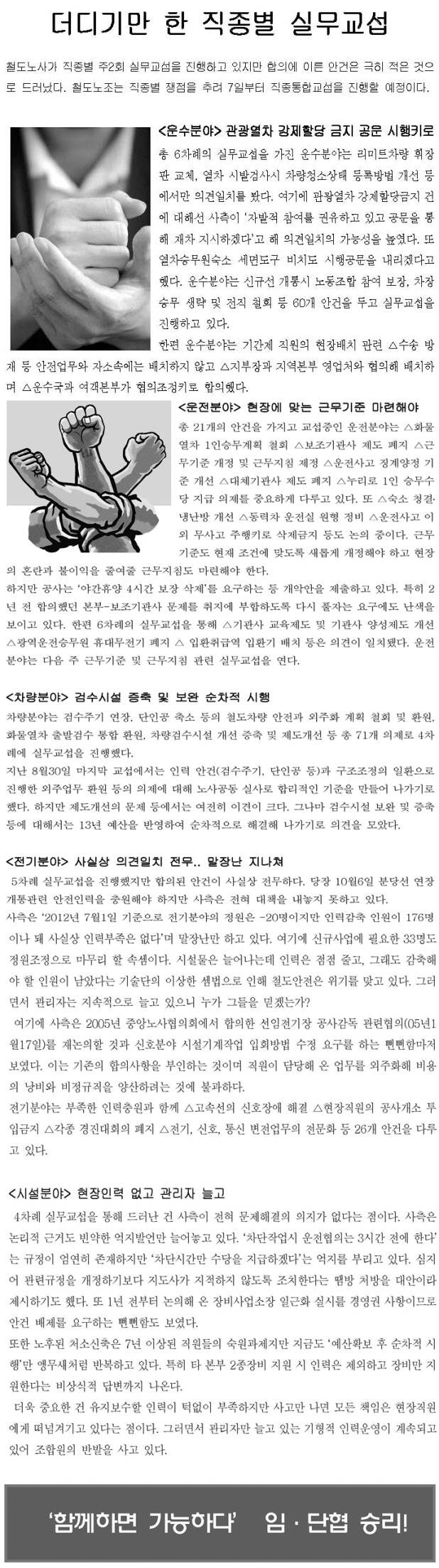 Àü±¹Ã¶µµ³ëµ¿Á¶ÇÕ°ú ÇùÀÇÇÏ¿©¾ß ÇÕ´Ï´Ù.