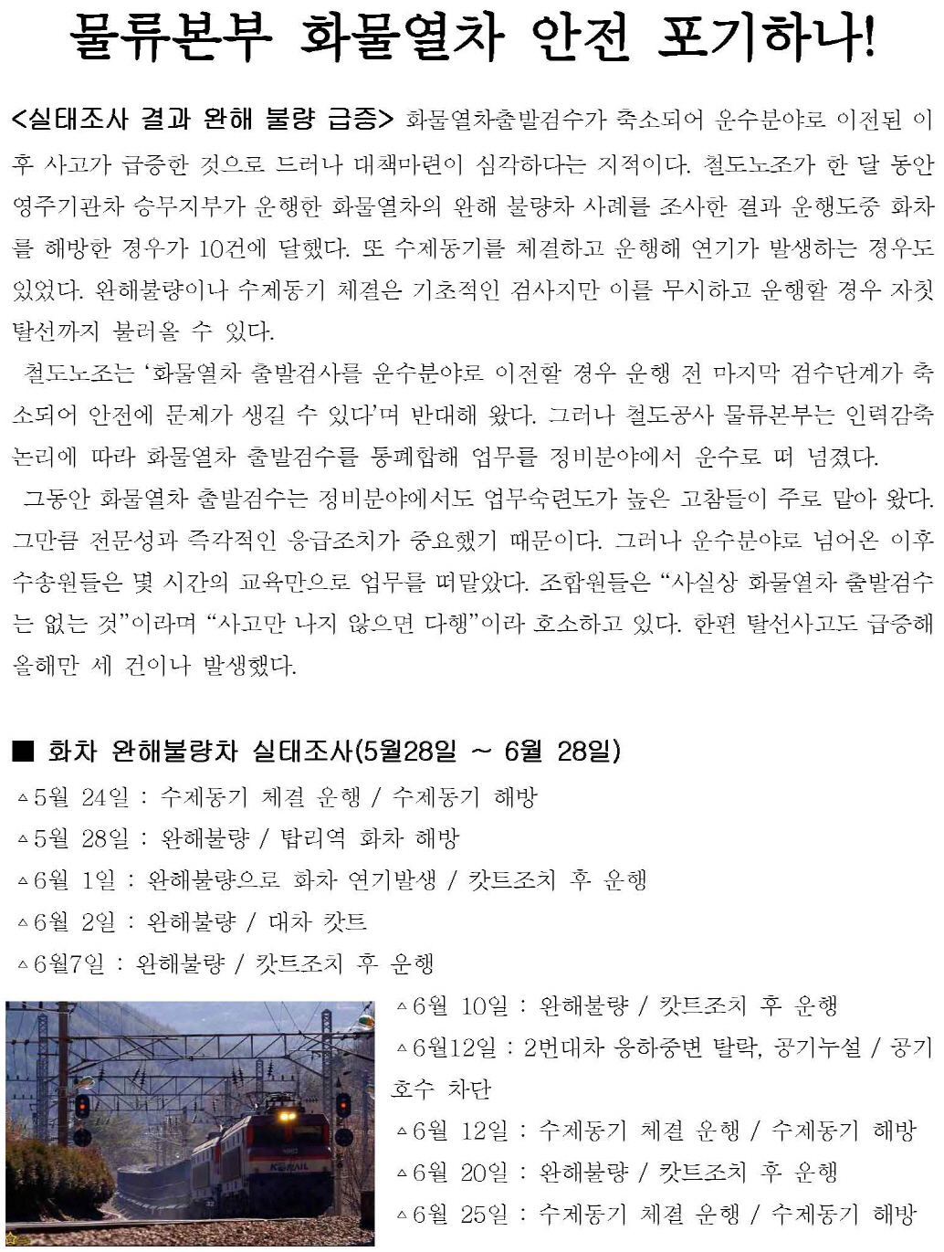 Àü±¹Ã¶µµ³ëµ¿Á¶ÇÕ°ú ÇùÀÇÇÏ¿©¾ß ÇÕ´Ï´Ù.