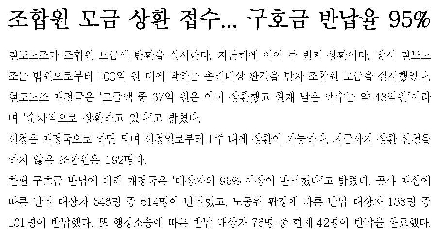 Àü±¹Ã¶µµ³ëµ¿Á¶ÇÕ°ú ÇùÀÇÇÏ¿©¾ß ÇÕ´Ï´Ù.
