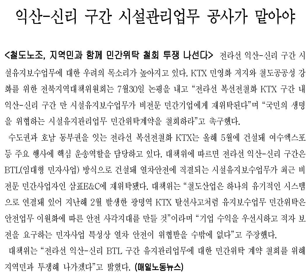 ÀÍ»ê-½Å¸® ±¸°£ ½Ã¼³°ü¸®¾÷¹« °ø»ç°¡ ¸Ã¾Æ¾ß öµµ¾ÈÀü º¸ÀåµÈ´Ù.#öµµ³ëÁ¶