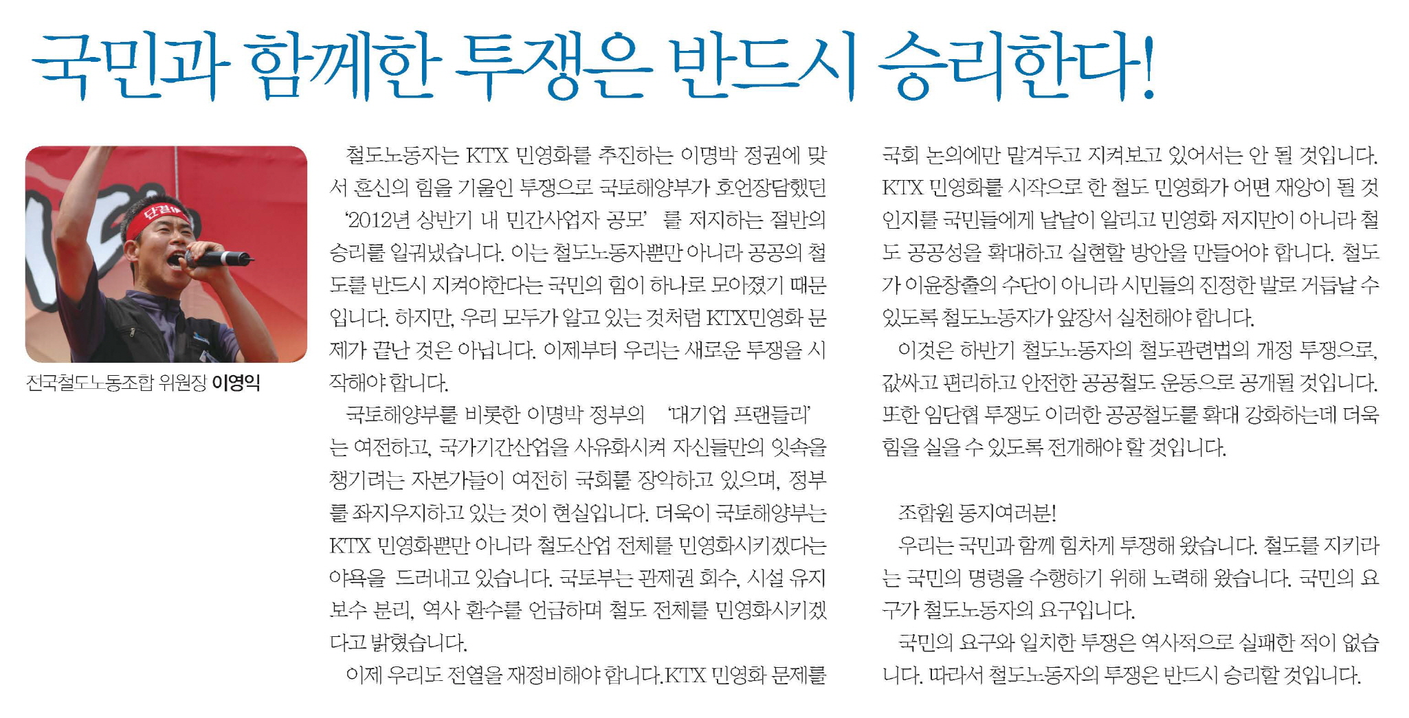 Àü±¹Ã¶µµ³ëµ¿Á¶ÇÕ°ú ÇùÀÇÇÏ¿©¾ß ÇÕ´Ï´Ù.