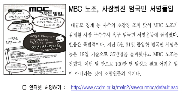 ¢º¢¸MBC ³ëÁ¶, »çÀåÅðÁø ¹ü±¹¹Î ¼­¸íµ¹ÀÔ