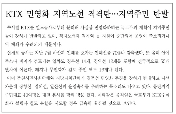 789 Ãæ³²½Ã¹Î»çȸ´Üü ¡°KTX¹Î¿µÈ­, ÀåÇ×¼± Àç¾ÓµÉ °Í #öµµ¹Î¡¦ öµµ³ëÁ¶ 08-27 1653