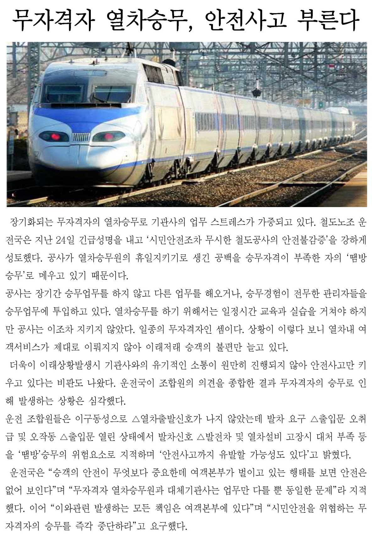 792 öµµ³ëÁ¶ ¸ðµç Áغñ´Â ³¡³µ´Ù¡¯ ¼ö¼­¹ßKTX¹ýÀÎ ¼³¸³½Ã ÃÑÆÄ¡¦ öµµ³ëÁ¶ 08-27 1743
