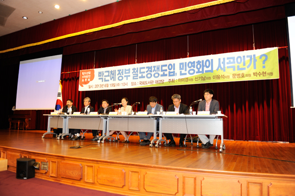 6¿ù 19ÀÏ ¿ÀÀü 10½Ã, ±¹È¸µµ¼°ü ´ë°´ç¿¡¼´Â ¹ÎÁÖ´ç ±¹È¸ÀÇ¿øµéÀÌ ÁÖÃÖÇÏ´Â ¡®Ã¶µµ»ê¾÷¹ßÀü¹æ¾È Åä·Ðȸ - ¹Ú±ÙÇýÁ¤ºÎ öµµ°æÀïµµÀÔ, ¹Î¿µÈÀÇ ¼°îÀΰ¡¡¯°¡ °³ÃֵǾú´Ù. Åä·Ðȸ¿¡´Â ¹ÎÁÖ´ç ±¹È¸ÀÇ¿øÀÎ ÁÖ½Â¿ë ±¹È¸±¹Åä±³ÅëÀ§¿øÀå, À̹̰æ, ½Å±â³², ÀÌÀ±¼®, ¹®º´È£, ¹Ú¼öÇöÀÇ¿øÀÌ Âü¼®Çß´Ù. ¶ÇÇÑ Ã¶µµ³ëÁ¶ ±è¸íȯÀ§¿øÀå°ú 300¿© °£ºÎ, Á¶ÇÕ¿øÀÌ Âü¼®Çß°í öµµ°ø»ç, öµµ°ø´ÜÀÇ °£ºÎµéµµ ÀϺΠÂü¼®Çß´Ù. Åä·Ðȸ´Â ¸ðµÎ 500¿©¸íÀÌ Âü¼®ÇØ ºó Á¼®ÀÌ ¾ø¾î ÀϾ ä·Î µé¾î¾ß ÇÒ¸¸Å Âü¼®ÀÚµéÀÇ Ã¶µµ»ê¾÷¹ßÀü¹æ¾È¿¡ ´ëÇÑ ¶ß°Å¿î °ü½ÉÀ» µå·¯³Â´Ù.