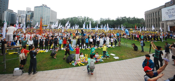 öµµ, KTX¹Î¿µÈ ¹Ý´ë ¹ü±¹¹Î´ëȸ°¡ ¼¿ï ½Ãû±¤Àå¿¡¼10,000¿©¸íÀÌ ¸ðÀÎ °¡¿îµ¥ ÁøÇà µÇ¾ú´Ù. ´ëȸ¸¦ ÁغñÇÏ¸é¼ Àå¸Àºñ·Î ´ëȸÀÇ ÁøÇà ¿©ºÎ¸¶Àú ºÒÅõ¸íÇÑ »óȲÀ̾úÀ½À» °í·ÁÇÑ´Ù¸é öµµ¹Î¿µÈ¿¡ ´ëÇÑ ±¹¹ÎµéÀÇ ¹Ý´ë ÀÇÁö°¡ ³ô¾ÒÀ½À» º¸¿©ÁØ´Ù. ¼ö¸¹Àº ´ÜüµéÀÌ ÀÚ¸®¸¦ ÇÔ²² ÇßÁö¸¸ È®¿¬È÷ öµµ³ëµ¿ÀÚµé°ú ±× °¡Á·ÀÇ Âü¿©°¡ µ¸º¸¿´´Ù.
