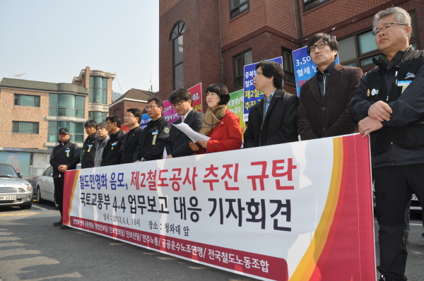 °ø°øºÎ¹® ¹Î¿µÈ¹Ý´ë °ø°ø¼º°È °øµ¿Çൿ (ÀÌÇÏ ¹Î¿µÈ¹Ý´ë °øµ¿Çൿ), ¹ÎÁÖ³ëÃÑ, °ø°ø¿î¼ö¿¬¸Í, Á¦ Áøº¸Á¤´ç, öµµ³ëµ¿Á¶ÇÕÀº ±¹Åä±³ÅëºÎÀÇ 4.4 û¿Í´ë ¾÷¹«º¸°í¿¡ ¸ÂÃç 4¿ù 4ÀÏ 10½Ã û¿Í´ë ÀÔ±¸ û¿îµ¿ Áֹμ¾ÅÍ ¾Õ¿¡¼ ¡®Ã¶µµ¹Î¿µÈ À½¸ð, Á¦2öµµ°ø»ç ÃßÁø ±Ôź ±âÀÚȸ°ß¡¯À» °³ÃÖÇÏ¿´´Ù.