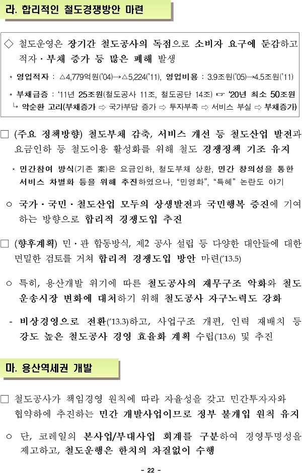 º¸µµÀÚ·á¿¡ µû¸£¸é ¼ö¼¹ß KTX ¿î¿µ¿¡ ÀÖ¾î ¡®¹Î.°ü ÇÕµ¿¹æ½Ä, Á¦2°ø»ç ¼³¸³ µî ´Ù¾çÇÑ ´ë¾Èµé¿¡ ´ëÇÑ ¸é¹ÐÇÑ °ËÅ並 °ÅÃÄ °æÀïµµÀÔ¡¯¾ÈÀ» ¿À´Â 5¿ù±îÁö ¸¶·ÃÇÑ´Ù´Â °èȹÀÌ´Ù.