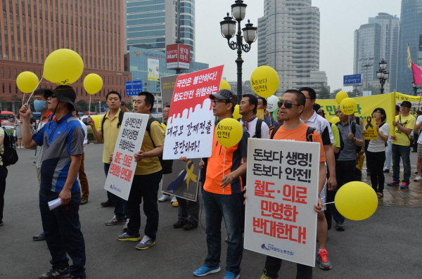 Àü±¹¹ÎÁֳ뵿Á¶ÇÕÃÑ¿¬¸Í Á¶ÇÕ¿ø 1õ¿© ¸íÀÌ 24ÀÏ ¿ÀÈÄ 4½ÃÂë ¼¿ï¿ª ±¤Àå¿¡¼ öµµ¿Í ÀÇ·á ¹Î¿µÈ Áß´ÜÀ» ¿ä±¸ÇÏ´Â '»ý¸í°ú ¾ÈÀüÀÇ ¹°°á ´ëÇàÁø'À» ½ÃÀÛÇß´Ù.