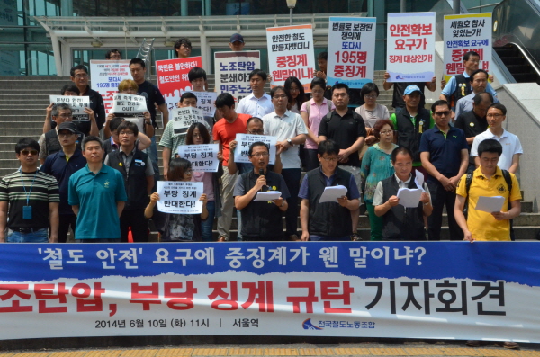 öµµ³ëµ¿Á¶ÇÕÀÌ Ã¶µµ¾ÈÀüÀ» ÁöŰ·Á´Â öµµ³ëµ¿ÀÚ¿¡ ´ëÇÑ Ã¶µµ°ø»çÀÇ µµ¸¦ ³Ñ´Â ź¾Ð°ú Á¤´çÇÑ Á¶ÇÕȰµ¿¿¡ ´ëÇÑ º¸º¹ÀûÀΠ¡°èÀÇ Áï°¢ÀûÀÎ Áß´ÜÀ» Ã˱¸Çϸç, ÃÑ·ÂÅõÀïÀ» ¾öÁßÈ÷ °æ°íÇÏ¿´´Ù.