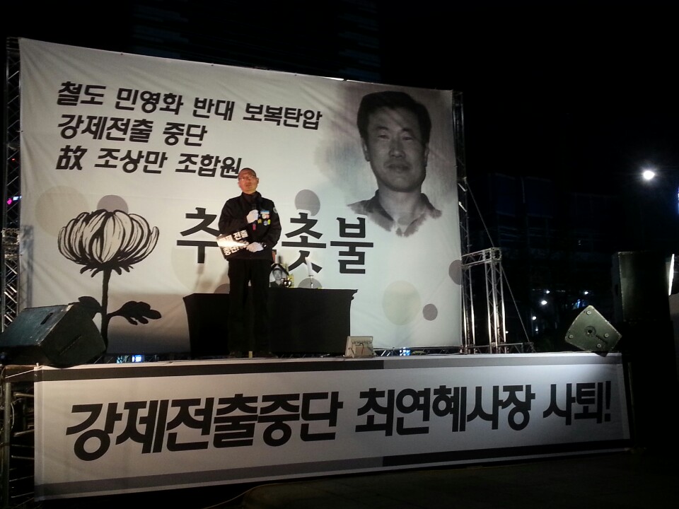 Âü¼®ÀÚµéÀº ͺ Á¶»ó¸¸ Á¶ÇÕ¿øÀÇ Á×À½Àº öµµ¹Î¿µÈ °ÇàÀ» À§ÇØ ¡°³ëÁ¶Åº¾Ð¿¡¸¸ °ñ¸ôÇÑ ÃÖ¿¬Çý öµµ°ø»ç »çÀåÀÇ ¹«ºÐº°ÇÑ ´ë±Ô¸ð ÀüÃâÀÌ ºÒ·¯¿Â »çȸÀû Ÿ»ì¡±À̶ó°í ÀÔÀ» ¸ð¾Ò°í, ±×·±µ¥µµ ¡°Ã¶µµ°ø»ç´Â ¸Å³â 2Â÷·Ê¿¡ °ÉÃÄ 5-10%ÀÇ ÀοøÀ» °Á¦ÀüÃâÇϰڴ١±¸ç Àü Á÷¿øµéÀ» ºÒ¾È°ú Á߾а¨¿¡ ³»¸ô°í ÀÖ´Ù°í ±ÔźÇß´Ù. Ã߸ðÇà»ç¸¦ ¸¶Ä£ µÚ ±è¸íȯ Áß¾ÓÀï´ëÀ§¿øÀåÀº û°è±¤Àå¿¡¼ ³ë¼÷³ó¼º¿¡ µ¹ÀÔÇß´Ù.
