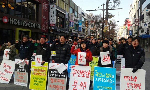 öµµ³ëÁ¶´Â ±ä±Þ ¾Ë¸²À» ÅëÇØ ¡°Åº¾ÐÀ¸·Î ¹«³ÊÁú öµµ³ëÁ¶°¡ ¾Æ´Ï´Ù¡±¶ó¸ç ¡°¼³»ç ÁöµµºÎ°¡ ħŻ´çÇÑ´Ù°í ÇØµµ ÆÄ¾÷À» öȸÇÏ´Â ÀÏÀº ¾øÀ» °Í¡±À̶ó ¹àÇû´Ù. ÀÌ¾î ¡°Á¶ÇÕ¿øÀº Á¤ºÎ¿Í »çÃø, º¸¼ö¾ð·ÐÀÇ ¿Ö°î¼±µ¿¿¡ ÁÖÀÇÇÏ°í ÆÄ¾÷´ë¿À¸¦ °°íÇÏ°Ô À¯ÁöÇ϶ó.¡±°í ´çºÎÇß´Ù.ÀÌ¾î ¡°ÆÄ¾÷À» ¿ø¸¸È÷ ¸¶¹«¸®Çϱâ À§Çؼ´Â ¼ö¼KTXÁÖ½Äȸ»çÀÇ ¼³¸³À» Ãë¼ÒÇÏ°í »çȸÀû ³íÀǸ¦ ÅëÇØ ÁøÁ¤ÇÑ Ã¶µµ¹ßÀü¹æ¾ÈÀ» ¸¶·ÃÇÏ´Â °Í¡±À̶ó¸ç ¡°Ã¶µµ³ëÁ¶ÀÇ ¿ä±¸´Â Áö³ ´ëÅë·É¼±°Å¿¡¼ ¹àÈù ¹Ú±ÙÇý ´ëÅë·ÉÀÇ °ø¾à°ú ÀÏÄ¡ÇÑ´Ù.¡±°í °Á¶Çß´Ù. ¶ÇÇÑ ¡°Á¤ºÎ´Â ¹Î¿µÈ°¡ ¾Æ´Ï´Ù¶ó´Â ¸»¸¸ ÇÒ °ÍÀÌ ¾Æ´Ï¶ó ¹Î¿µÈ¸¦ ¸·±â À§ÇÑ Á¦µµÀû ÀåÄ¡¸¦ ¸¶·ÃÇØ¾ß ÇÑ´Ù.¡±°í °Åµì Ã˱¸Çß´Ù.