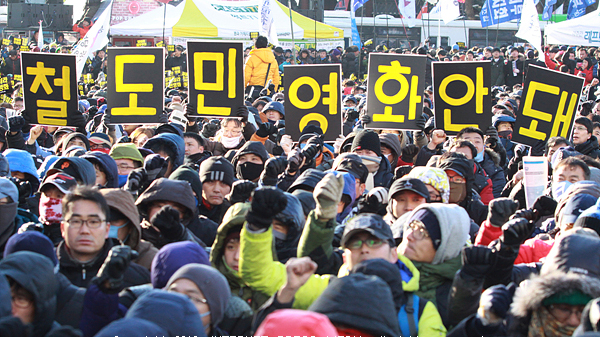 23Àϰ£ÀÇ Àå±âÆÄ¾÷ÀÌ ¸¶¹«¸® µÇ¾úÁö¸¸ öµµÆÄ¾÷À» ÁöÁöÇÏ´Â ±¹¹ÎÇൿÀº ¸ØÃßÁö ¾Ê¾Ò´Ù. ÇöÀåÅõÀïÀ» °áÀÇÇÑ Áö³´Þ 31ÀÏ ÃÑÆÄ¾÷ º¸°í´ëȸ°¡ ¿¸° Àå¼Ò¿¡´Â ¾î±è¾øÀÌ ½Ã¹Î´ëÃ¥À§°¡ Âü¿©ÇØ °ü½ÉÀ» ¸ð¾Ò´Ù. À̵éÀº ¼Õ¿¡ ¡®Ã¶µµÆÄ¾÷ÁöÁö¡¯, ¡®Èû³»¶ó öµµ³ëÁ¶¡¯ µîÀÇ ÇÇÄÏÀ» µé°í ÇöÀåÅõÀïÀ» °áÁ¤ÇÑ Ã¶µµ³ëµ¿ÀÚ¸¦ ÀÀ¿øÇß´Ù. 1ÀÏ ¼¿ï¿ª¿¡´Â ¡®±×µ¿¾È °í¸¶¿ü½À´Ï´Ù. ¹Î¿µÈ ²À ¸·¾ÆÁÖ¼¼¿ä¡¯¶õ ÇÇÄÏÀ» µç Áß³âÀÇ ¿©¼º ½Ã¹Îµµ ÀÖ¾ú´Ù. öµµ³ëÁ¶ ¿¸°±¤Àå¿¡µµ öµµ³ëÁ¶¸¦ ÀÀ¿øÇÑ´Ù´Â °Ý·Á ±ÛÀÌ ¼âµµÇϰí ÀÖ´Ù.