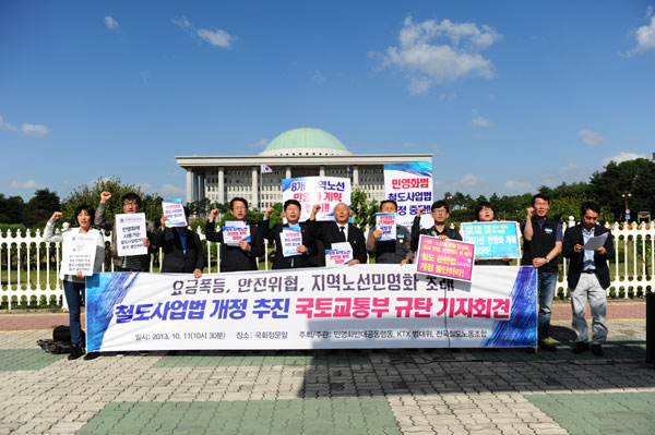 ktx¹ü´ëÀ§´Â 10¿ù11ÀÏ ±¹È¸¾Õ¿¡¼ ±âÀÚȸ°ßÀ» ¿°í ±¹Åä±³ÅëºÎ°¡ 9¿ù3ÀÏ ¡®»ç¾÷³ë¼±¿¡ µû¸¥ ¸éÇ㠺ο©¡¯, ¡®»ç¾÷ÀÚ ¼±Á¤ÀýÂ÷¡¯µîÀ» ±ÔÁ¤ÇÑ Ã¶µµ»ç¾÷¹ý °³Á¤¾ÈÀ» ÀÔ¹ý¿¹°íÇÑ µ¥ ´ëÇØ ¡®Ã¶µµ»ç¾÷¹ý °³Á¤¡¯ Áß´ÜÀ» ¿ä±¸ÇÏ¿´´Ù.