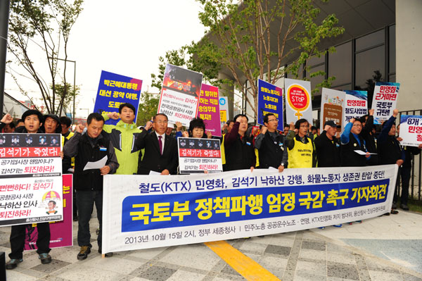 KTX¹Î¿µÈÀúÁö¹ü´ëÀ§, ¿ë»êÂü»ç Áø»ó±Ô¸íÀ§¿øÈ¸¿Í °ø°ø¿î¼ö¿¬¸ÍÀº 15ÀÏ 2½Ã, Á¤ºÎ¼¼Á¾Ã»»ç ¾Õ¿¡¼ ±âÀÚȸ°ßÀ» ¿°í ±¹ÅäºÎ´Â ±¹¹ÎÀû ¹Ý´ë¿¡µµ ºÒ±¸Çϰí öµµ ¹Î¿µÈ¸¦ ÃßÁøÇϰí, ¿ë»êÂü»ç Ã¥ÀÓÀÚ¸¦ °øÇ×°ø»ç »çÀåÀ¸·Î ÀÓ¸íÇÏ´Â °ÍÀº ¹°·Ð ȹ°³ëµ¿ÀÚÀÇ »ýÁ¸±ÇÀ» ź¾ÐÇÏ´Â Á¤Ã¥À» ÃßÁøÇϰí ÀÖÀ¸¸ç ÀÌ·¯ÇÑ À߸øµÈ Á¤Ã¥À» ´çÀå Áß´ÜÇÒ °Í, ±×¸®°í ±¹È¸´Â ¾öÁ¤ÇÑ ±¹Á¤°¨»ç¸¦ ÅëÇØ ±¹ÅäºÎ Á¤Ã¥ÀÇ ¹®Á¦Á¡À» Áø´ÜÇÏ°í °³¼±Çϵµ·Ï ÇÒ °ÍÀ» Ã˱¸Çß´Ù.