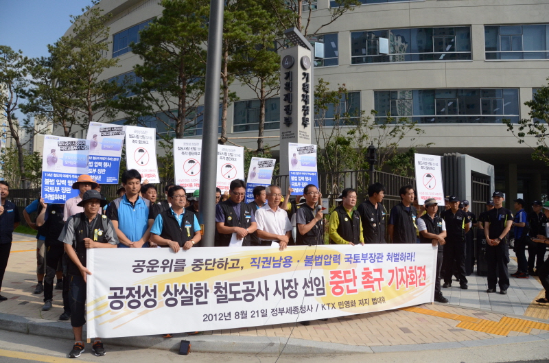 öµµ³ëÁ¶¿Í ¹ü´ëÀ§°¡ 21ÀÏ ±âȹÀçÁ¤ºÎ ¾Õ¿¡¼, ÄÚ·¹ÀÏ»çÀå ÀÓ¸í°ú °ü·ÃÇÑ ±¹ÅäºÎ °íÀ§°ü·áÀÇ Æ¯Á¤ÀÎ ¸ô¾ÆÁֱ⠰³ÀÔ¿¡ ´ëÇÑ Ç×ÀÇ ±âÀÚȸ°ßÀ» ÁøÇàÇϰí Ç×ÀǼÇÑÀ» ±âÀçºÎ¿¡ Àü´ÞÇß´Ù. öµµ³ëÁ¶¿Í ¹ü´ëÀ§´Â ±âÀÚȸ°ß¿¡¼ "¿ä½ÄÇàÀ§¿Í °üÄ¡¿¡ ¹°µç °ø°ø±â°ü¿î¿µÀ§¿øÈ¸¸¦ Áß´ÜÇÏ°í °øÁ¤¼º°ú °´°ü¼º ±×¸®°í ÀýÂ÷¸¦ ÁöŰ´Â Àç°ø¸ð¸¦ ÇØ¾ß ÇÑ´Ù"°í ÁÖÀåÇß´Ù. ¶ÇÇÑ ±¹ÅäºÎÀÇ ÀÓ¿øÃßõÀ§¿øÈ¸ ¿Ü¾Ð°ú °ü·ÃµÈ Ã¥ÀÓÀÚ Ã³¹úµµ ¿ä±¸Çß´Ù.