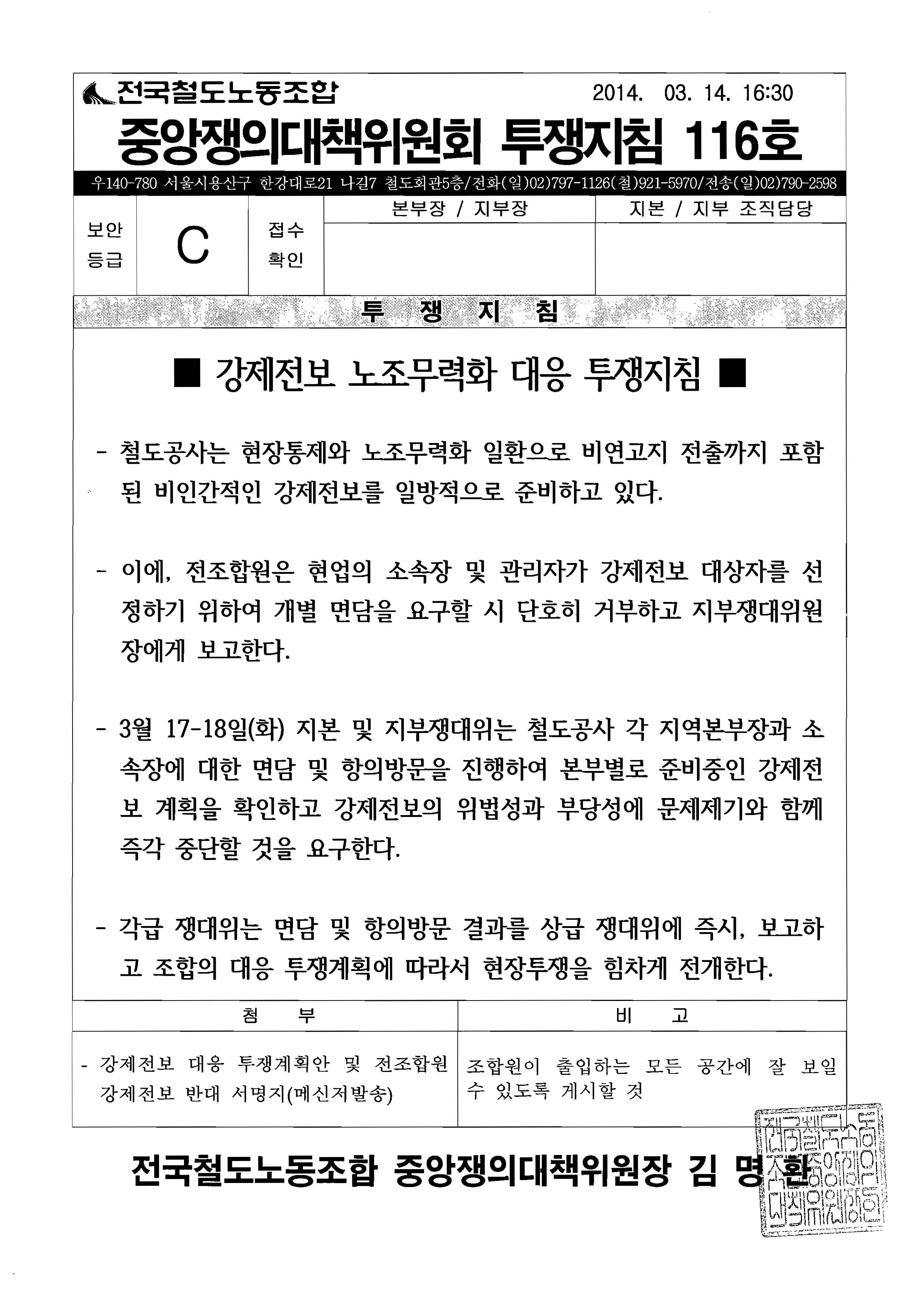 [Áß¾ÓÀï´ëÀ§ ÅõÀïÁöħ 116È£] °­Á¦Àüº¸ ³ëÁ¶¹«·ÂÈ­ ´ëÀÀ ÅõÀïÁöħ