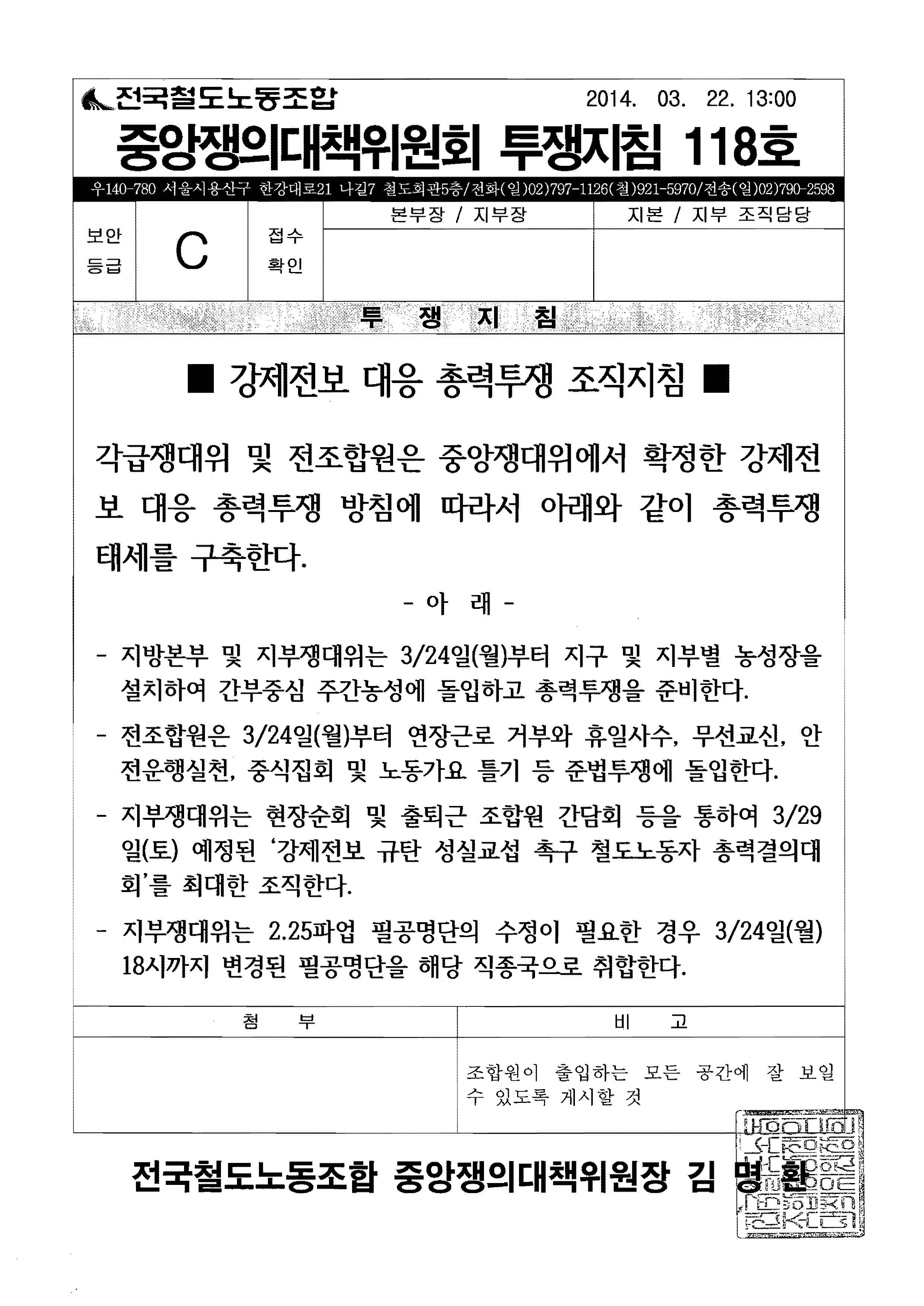 [Áß¾ÓÀï´ëÀ§ ÅõÀïÁöħ 118È£]°­Á¦Àüº¸ ´ëÀÀ ÃÑ·ÂÅõÀï Á¶Á÷Áöħ