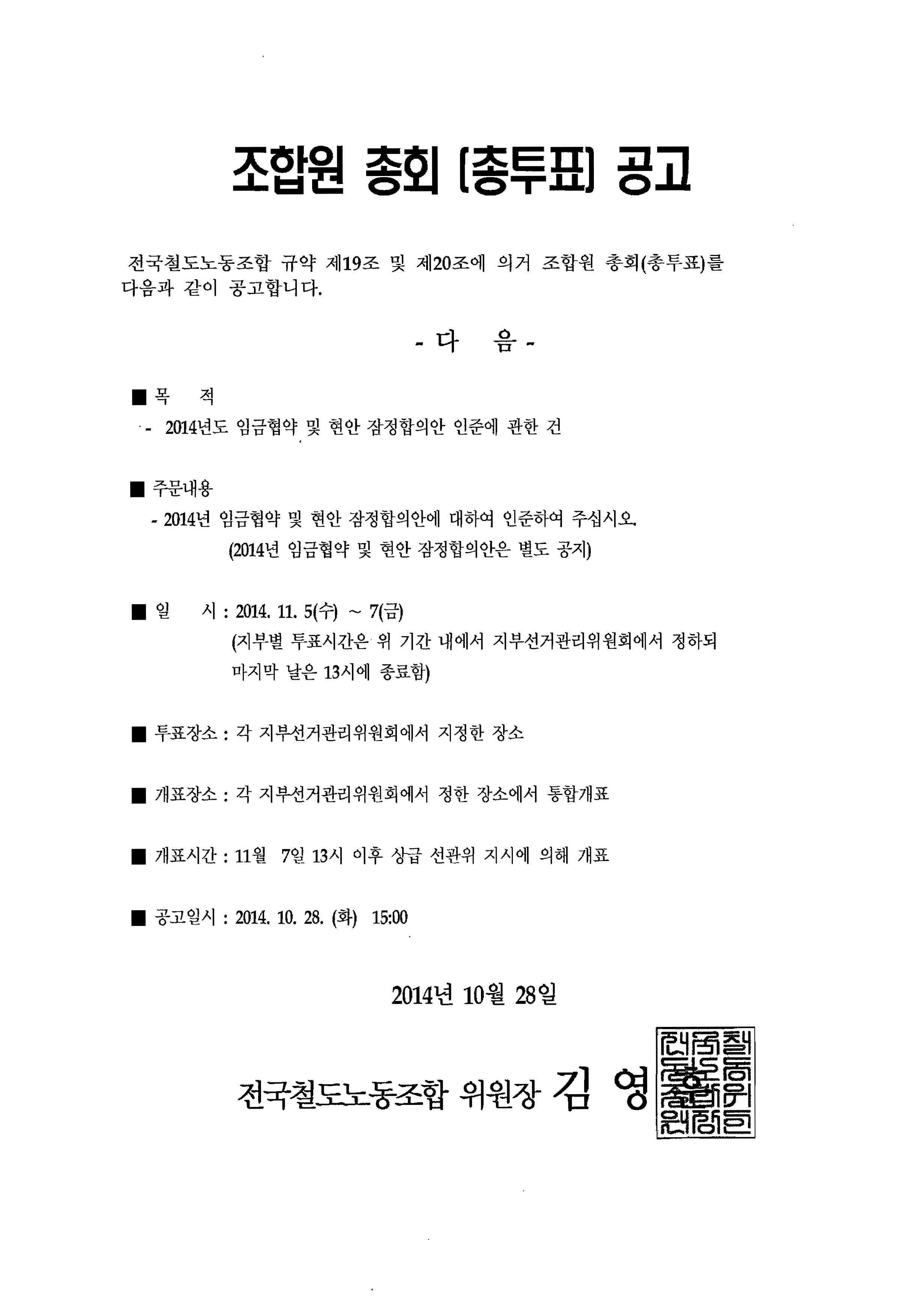 2014³â ÀÓ±Ý ¹× Çö¾È ÀáÁ¤ÇÕÀÇ¾È ÀÎÁØ ÅõÇ¥ °ø°í.pdf (17.8K) [519] DATE : 2014-10-28 15:50:33
