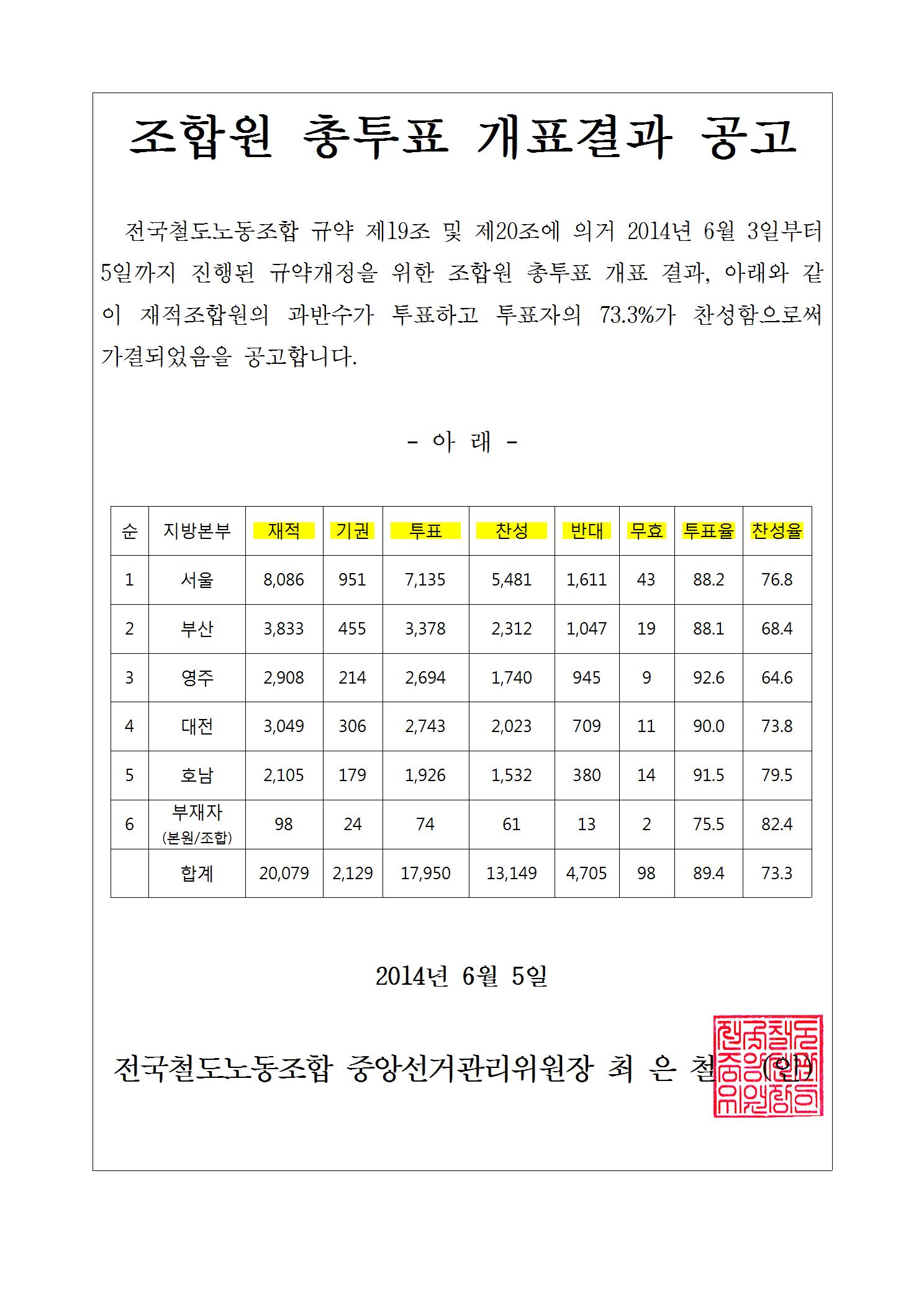 [°ø°í] 2014³â ±Ô¾à°³Á¤ ÃÑÅõÇ¥ °³Ç¥°á°ú °ø°í.hwp (127.5K) [337] DATE : 2014-06-05 17:27:02