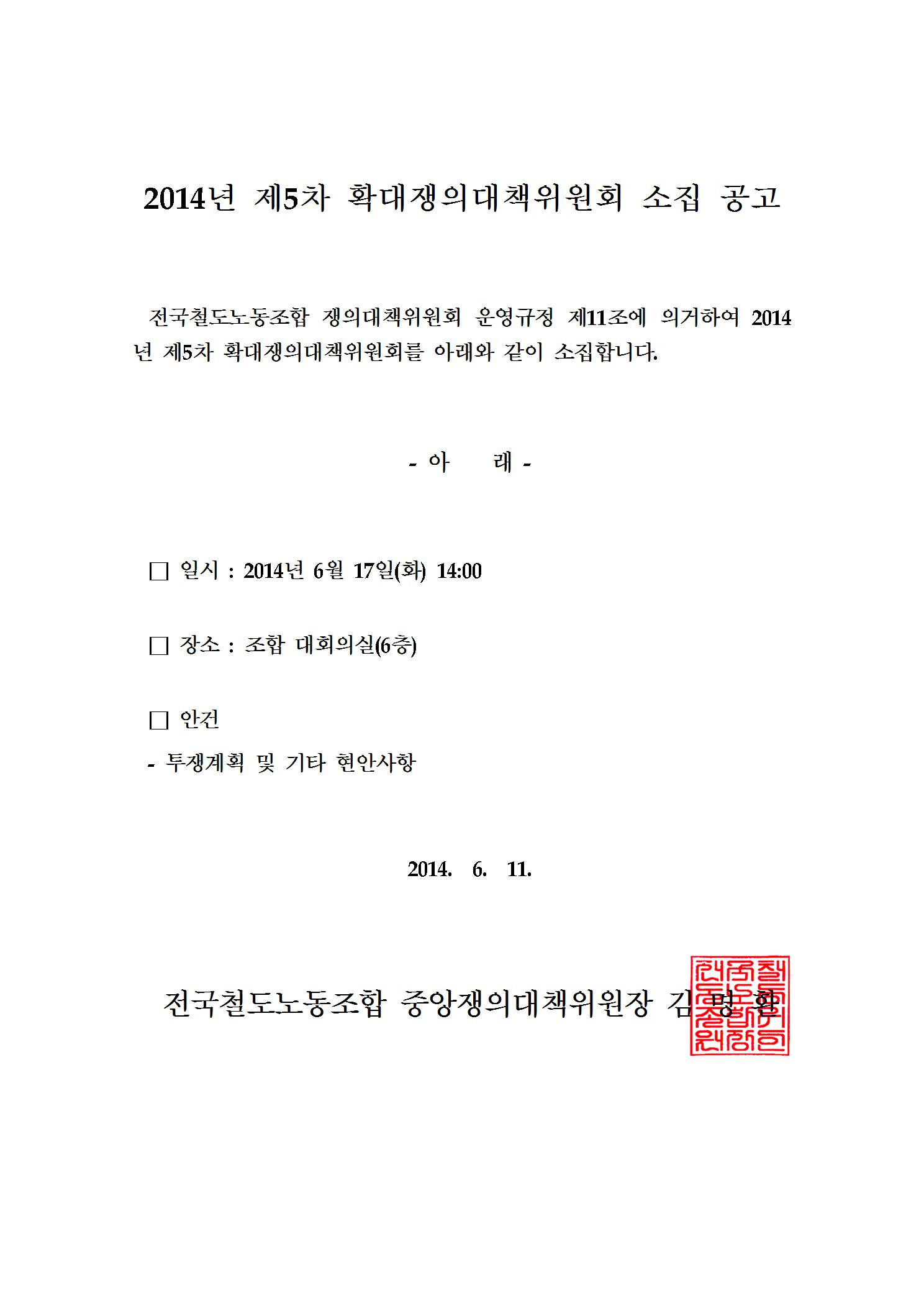 2014 -5Â÷ È®´ëÀï´ëÀ§ °³ÃÖ °ø°í.hwp (197.0K) [79] DATE : 2014-06-11 16:32:18