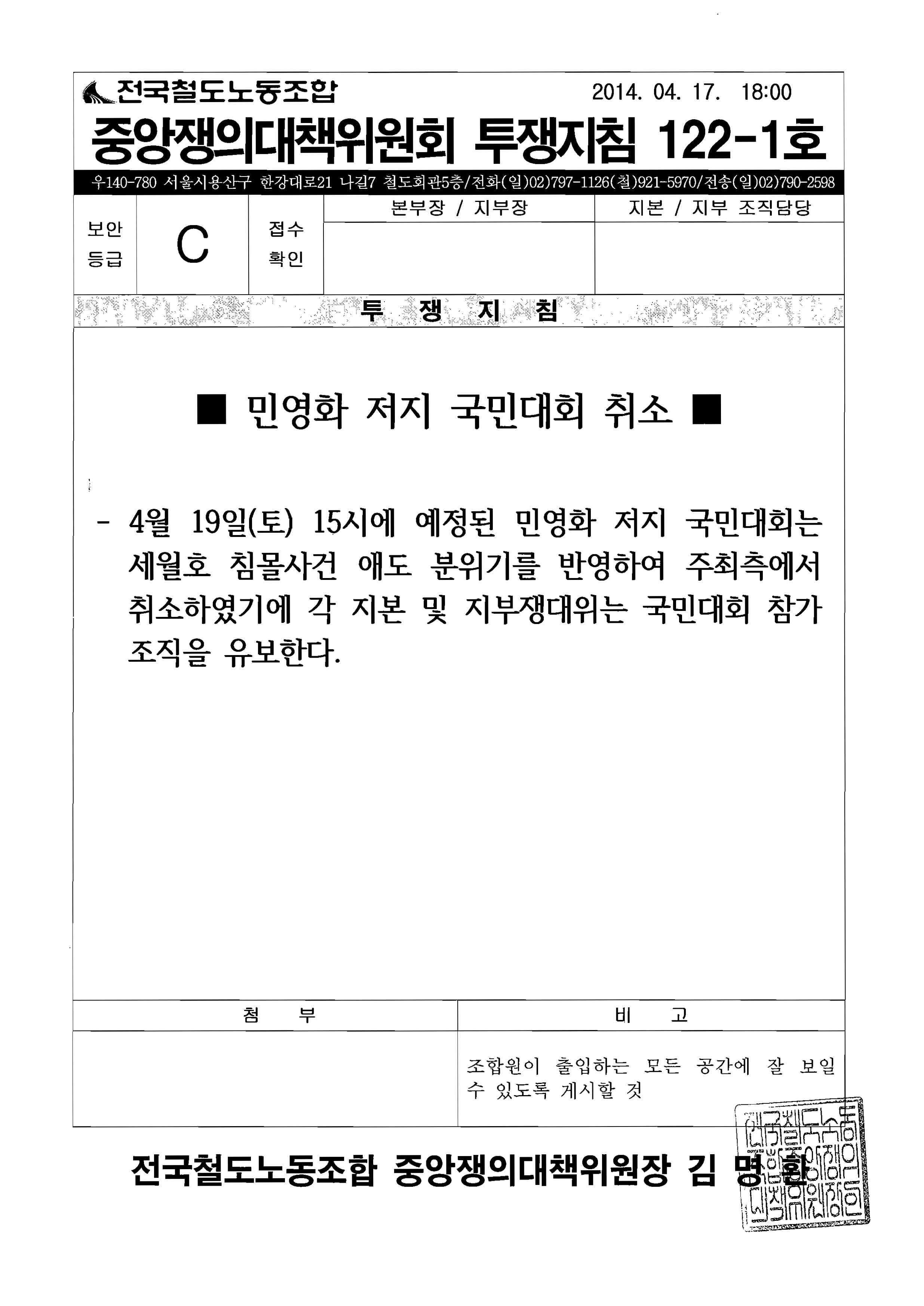 [Áß¾ÓÀï´ëÀ§ ÅõÀïÁöħ 122-1È£] ¹Î¿µÈ­ÀúÁö ±¹¹Î´ëȸ Ãë¼Ò