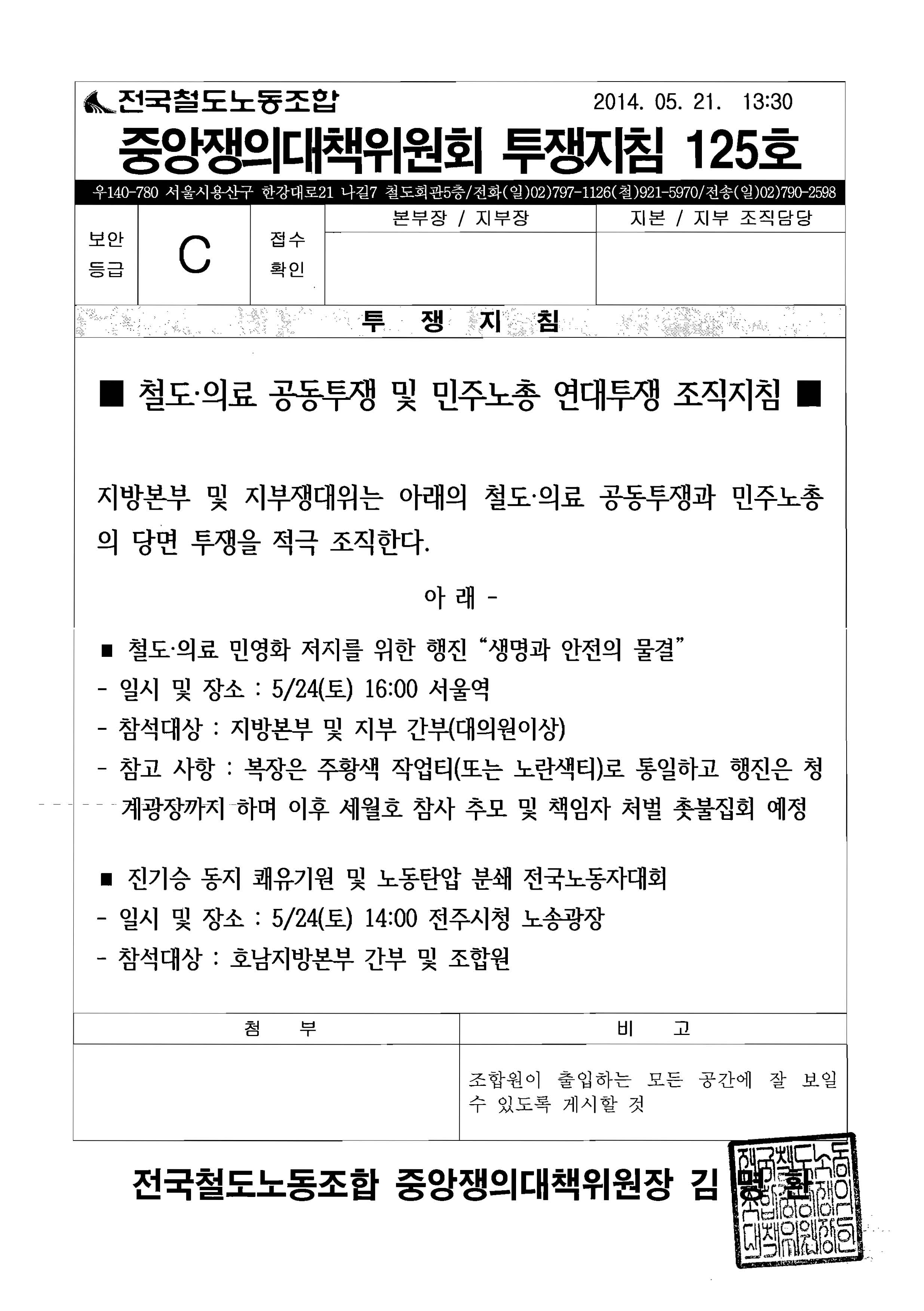 [Áß¾ÓÀï´ëÀ§ ÅõÀïÁöħ 125È£] öµµ.ÀÇ·á °øµ¿ÅõÀï ¹× ¹ÎÁÖ³ëÃÑ ¿¬´ëÅõÀï Á¶Á÷Áöħ