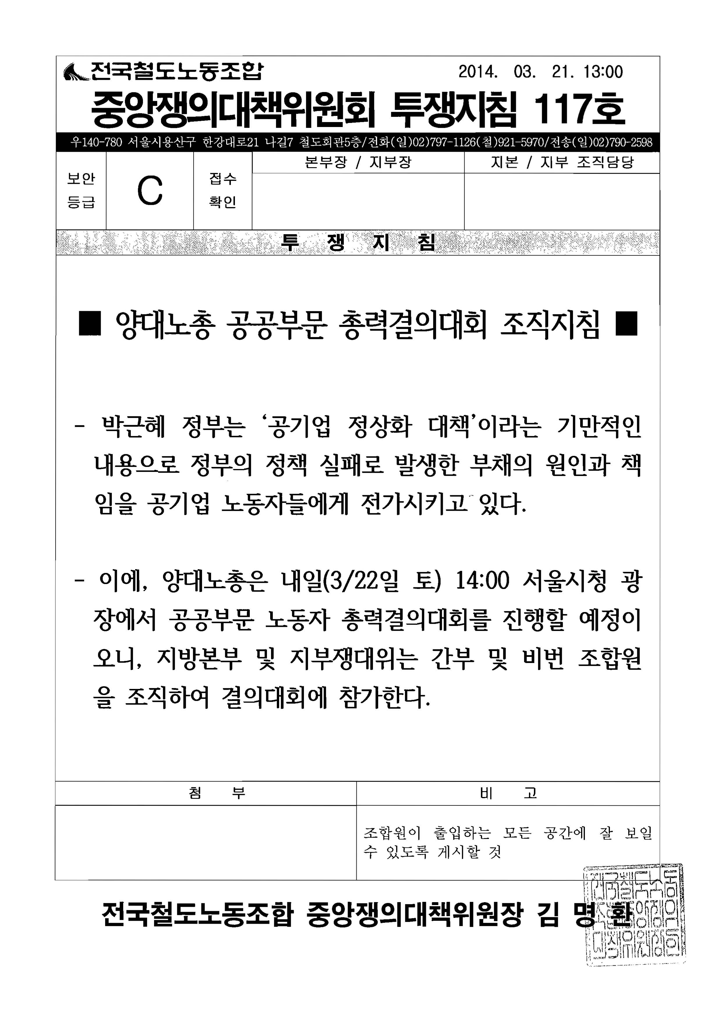 304 [Áß¾ÓÀï´ëÀ§ ÅõÀïÁöħ 116È£] °­Á¦Àüº¸ ³ëÁ¶¹«·ÂÈ­ ´ëÀÀ Åõ¡¦ öµµ³ëÁ¶ 03-14 2110
