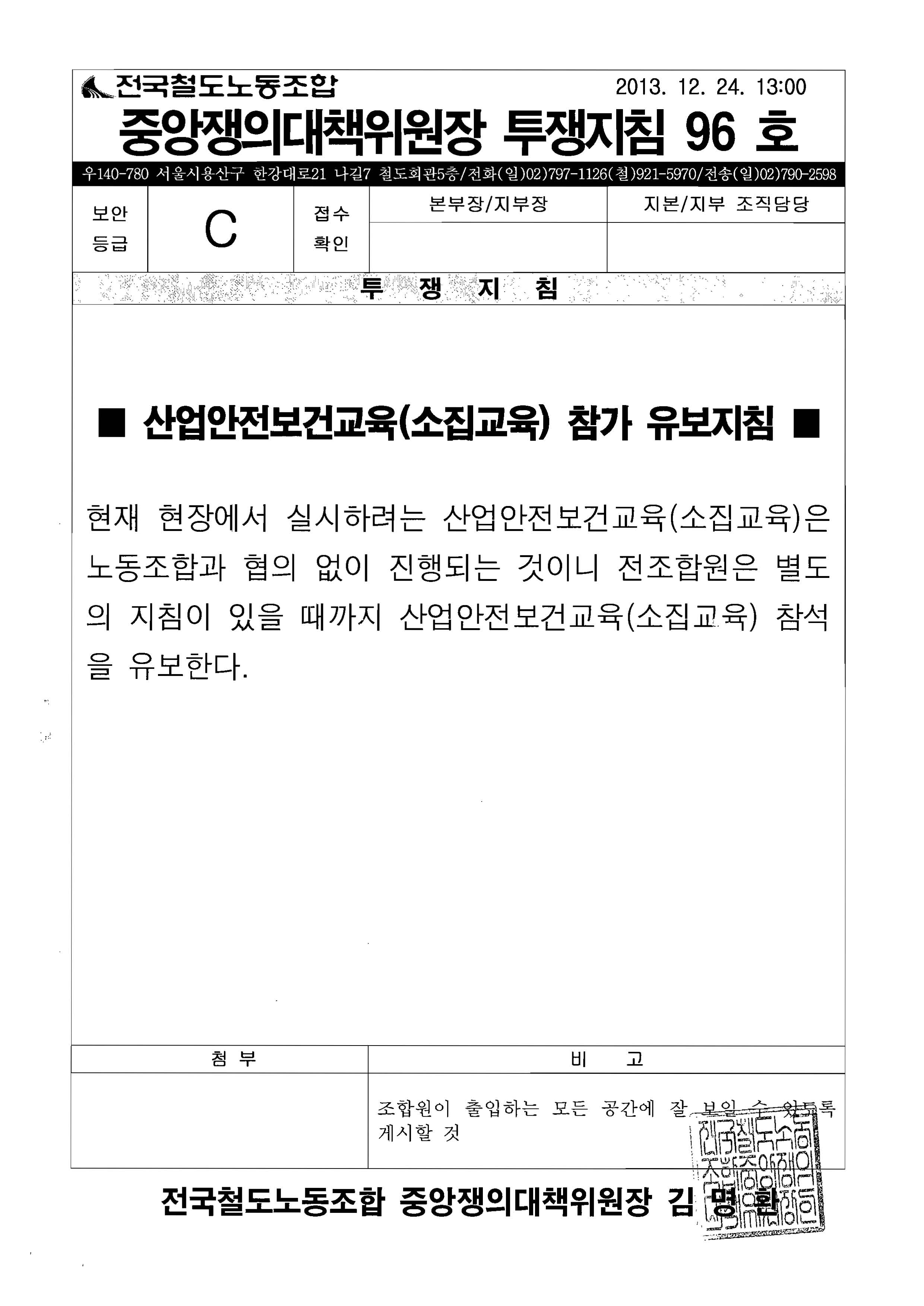[Áß¾ÓÀïÀÇ´ëÃ¥À§¿øÈ¸ ÅõÀïÁöħ 96È£] »ê¾÷¾ÈÀüº¸°Ç±³À° Âü°¡ À¯º¸Áöħ