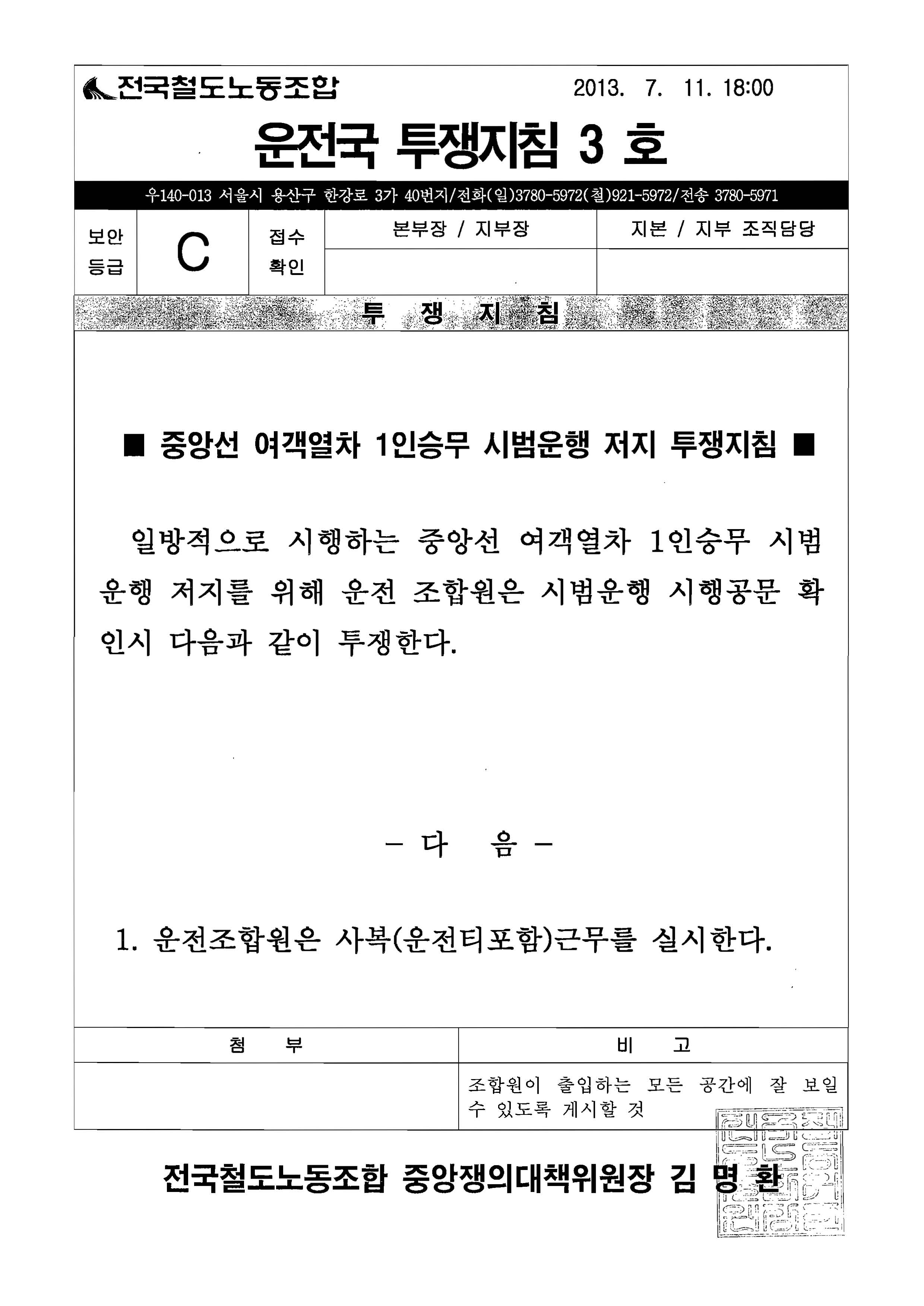[¿îÀü±¹ÅõÀïÁöħ3È£]Áß¾Ó¼± ¿©°´¿­Â÷ 1Àν¹« ½Ã¹ü¿îÇàÀúÁö ÅõÀïÁöħ