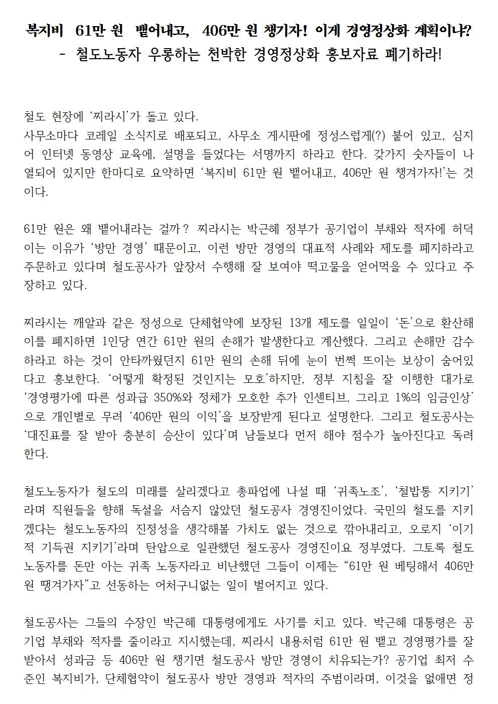 Àü±¹Ã¶µµ³ëµ¿Á¶ÇÕ°ú ÇùÀÇÇÏ¿©¾ß ÇÕ´Ï´Ù.