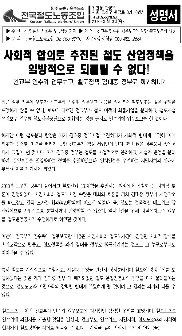 Àü±¹Ã¶µµ³ëµ¿Á¶ÇÕ°ú ÇùÀÇÇÏ¿©¾ß ÇÕ´Ï´Ù.