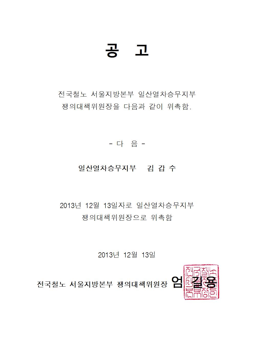 °ø°í] ¼­¿ïÁö¹æº»ºÎ Àϻ꿭Â÷½Â¹«ÁöºÎ ÀïÀÇ´ëÃ¥À§¿øÀå À§ÃË °ø°í